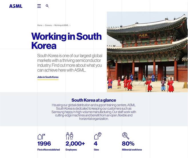 | ▲ ASML코리아의 현황. 1996년에 설립되어 2000명 넘는 직원이 일하고 있습니다. |