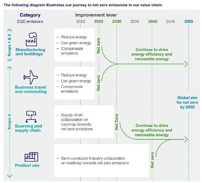 | ▲ 탄소 배출을 0으로 만들기 위해 만든 ASML의 로드맵. 2025년까지 자사 운영 과정에서의 탄소 배출은 0으로 만들겠다고 정해두었습니다. |