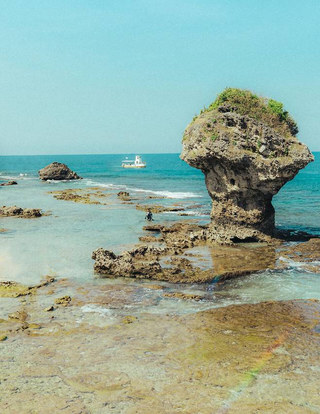 소류구를 대표하는 풍경, 꽃병 모양의 산호 바위(Vase Rock). 현지에서는 '화핑옌(花石)'이라고 부른다. 이 주변 바다에 거북이가 자주 출몰해 스노클링 명소로 꼽힌다.