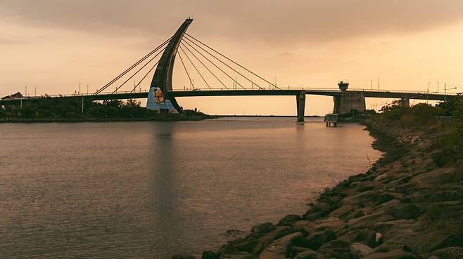 이곳의 랜드마크는 대만 최초의 도개식 경관대교인 콰하이 대교다. 풍경구 어디서든 눈에 띌 정도로 상당한 존재감을 뽐낸다. 길이 579m, 폭 40m인 다리는 측면에서 보면 세일링 요트처럼 날렵한 모양이다. 다리의 본래 목적은 물론 심미적 요소도 갖췄다.