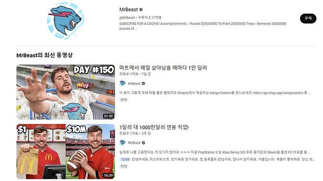 세계적으로 현재 구독자가 2억 1천700만 명에 달하는 미스터비스트는 넷플릭스에서 큰 인기를 끈 한국 드라마 '오징어게임'을 실제로 개최해 화제를 모으기도 했습니다.