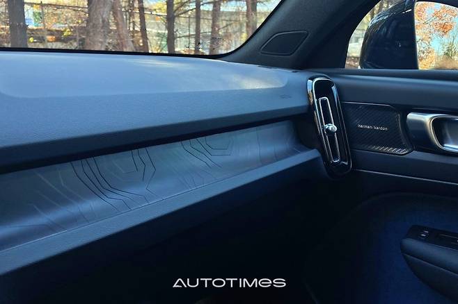 실내는 내연기관 볼보 컴팩트 SUV 라인업에서 봤던 모습과 같다. 필요한 기능과 구성을 단정하게 표현한 수준이다. 운전석 쪽으로 기울어진 센터페시아는 세로형 송풍구와 터치스크린, 몇 개의 버튼이 대표적이다. 이와 함께 디지털 계기판은 여느 볼보차 라인업과 마찬가지로 속도, 내비게이션, 변속모드 등을 간결하게 보여준다. 오디오는 볼보가 즐겨 찾던 바워스&윌킨스가 아닌 하만카돈 시스템을 적용했다. 모두 음질에 진심인 브랜드라 음향 시스템에 대한 불만은 적다.