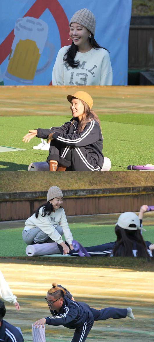 운동으로 땀을 흘리며 하루를 시작한다는 소유진은 이날 알콜러 9인과 모닝 필라테스에 나선다.