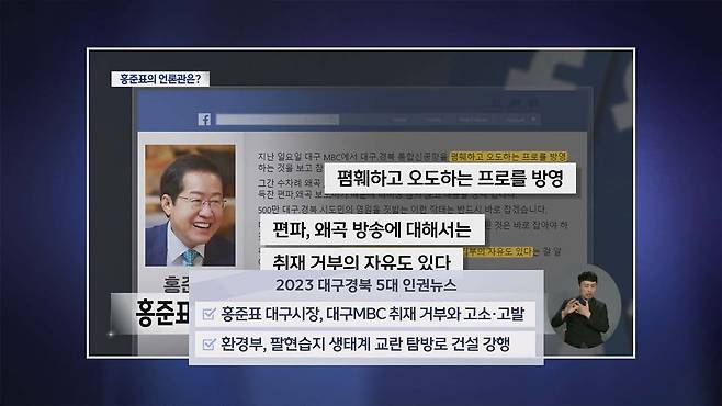 홍준표 시장 관련이 2건···'퀴어 축제 행정 대집행' '대구MBC 취재 거부와 고소'