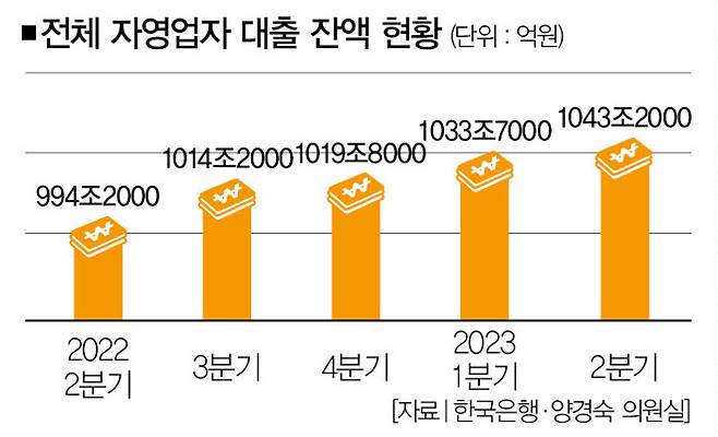 눈여겨볼 점은 국내 자영업자들의 부채 상황이 심각한 수준에 처해 있다는 점이다. 지난 10월 4일 양경숙 더불어민주당 의원이 한국은행으로부터 받아 공개한 '자영업자 대출 현황'에 따르면 올해 2분기(6월 말) 기준 자영업자의 전체 금융기관 대출 잔액은 1043조2000억원이었다. 1분기(1033조7000억원)에 이어 역대 최고치를 갈아치운 셈이다. 연체율 역시 전년 동기(0.47%) 대비 0.68 %포인트 오른 1.15%였다.