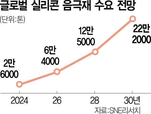 결국 미국을 비롯한 북미 시장 공략을 위해서는 중국산 흑연을 쓰지 않는 실리콘 음극재 개발·생산이 시급한 상황이고 현지 수요도 내년부터 본격적으로 늘어날 것으로 보인다.