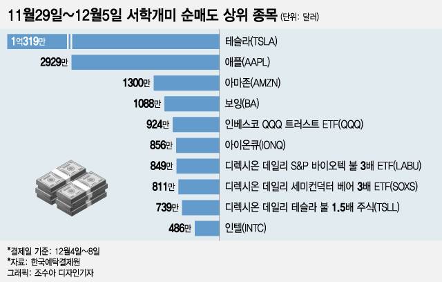 테슬라에 대한 실망 매물이 쏟아져 나오며 서학개미들이 4주 연속 미국 증시에서 순매도를 이어갔다.