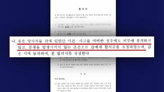 합의서에는 외부에 합의 사실을 유출할 시 임 씨에 대해서만 책임을 묻도록 한 조항도 명시됐습니다.
