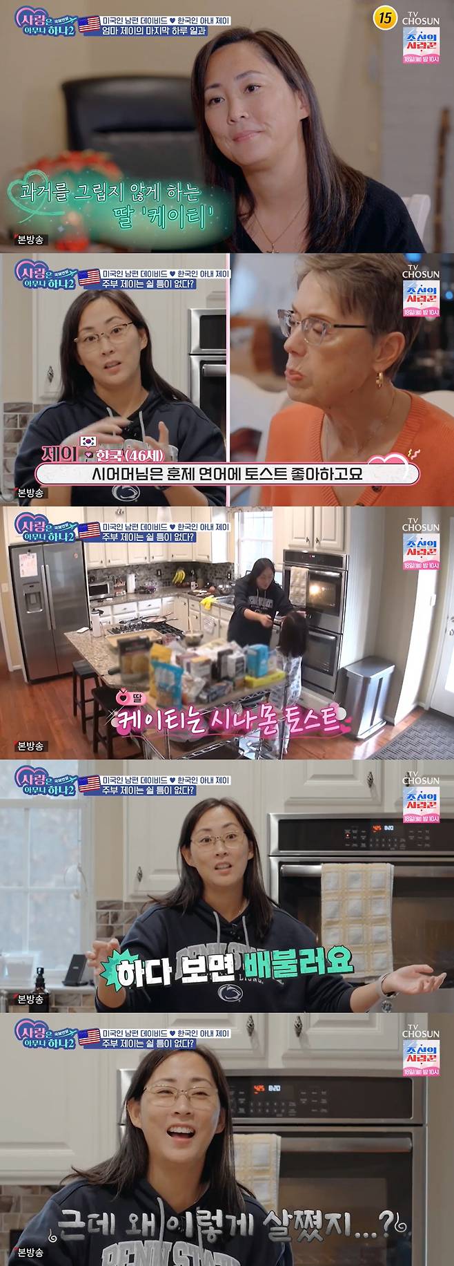 다음날 아침, 제이는 아침 식사를 준비하느라 분주하게 움직였다. 이어 "남편과 시아버지는 비스킷에 소스를 얹어 먹는 걸 좋아하고 시어머님은 훈제 연어와 토스트를 좋아한다. 딸은 시나몬 토스트와 과일을 좋아하는데 아무도 내가 뭘 좋아하는지는 안 물어본다"라며 실소를 터트렸다. 이어 "저는 요리를 하면서 맛을 보다 보면 배가 부른다. 근데 왜 이렇게 살이 쪘지? 잘 안 먹는데"라고 덧붙여 웃음을 안겼다.