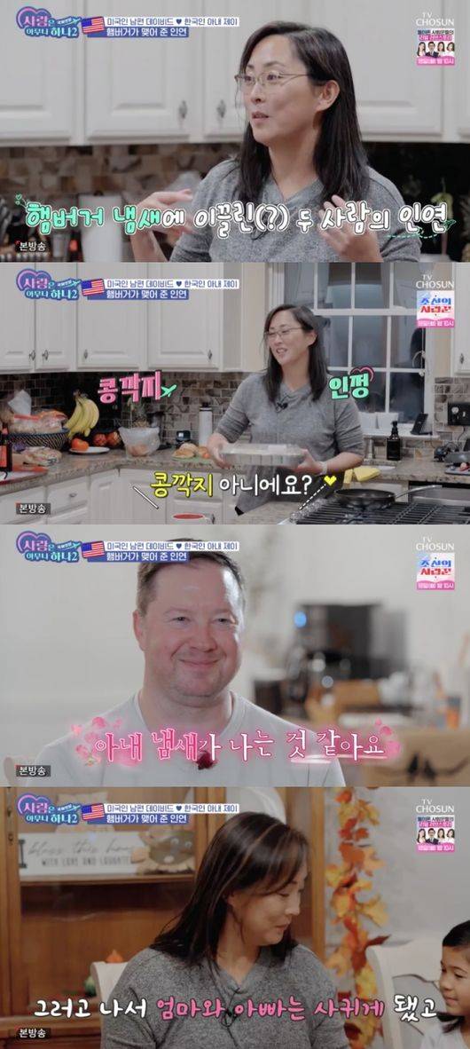 데이비드와 제이는 수제 햄버거를 만들기 시작했다. 두 사람은 햄버거로 인연을 맺어 사랑에 빠졌다고 했다. 제이는 “햄버거 냄새에 빠졌다고 한다”라며 남편의 콩깍지를 자랑했다. 데이비드는 “햄버거를 구울 때마다 아내 냄새가 나는 것 같다”라고 사랑꾼 면모를 드러냈다.