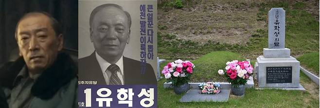 | ▲ <서울의 봄>에서 배송학 역을 맡은 배우 故염동헌, 유학성 국방부 군수차관, 유학성의 묘(좌측부터) |