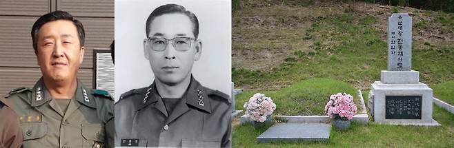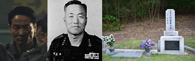 | ▲ <서울의 봄>에서 주완용 역을 맡은 배우 현봉식, 진종채 2야전군사령관, 진종채의 묘(좌측부터) |