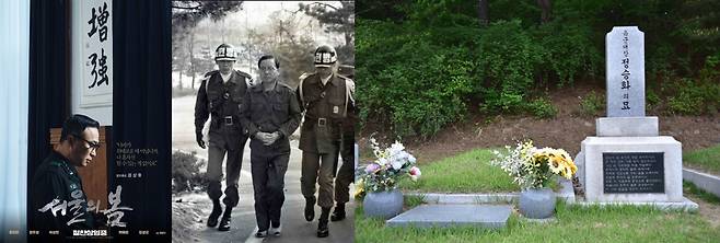 | ▲ <서울의 봄>에서 정상호 역을 맡은 배우 이성민, 반란군으로 부터 체포된 정승화 육군참모총장, 정승화 장군의 묘역(좌측부터) |