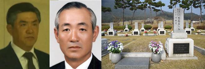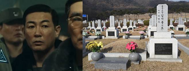 | ▲ <서울의 봄>에서 오구민 역을 맡은 배우 최민, 김시봉 육군본부관리참모부장의 묘역(좌측부터) |