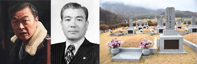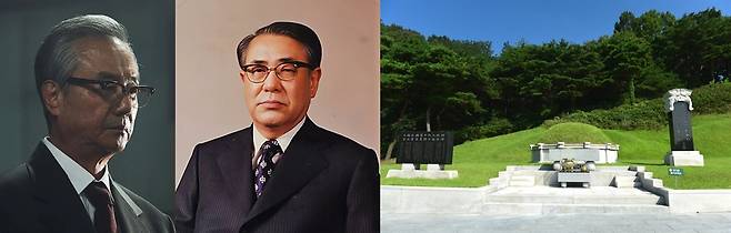 | ▲ <서울의 봄>에서 최한규 역을 맡은 배우 정동한, 최규하 태통령, 최규하 대통령의 묘역(좌측부터) |