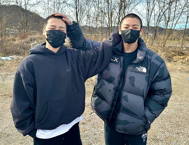 현재 맏형 진이 조교로 복무하고 있는 곳에 동반 입대한 두 사람은 전우애를 다지며 서로의 짧게 깎은 머리를 쓰다듬고 있어 눈길을 끈다.