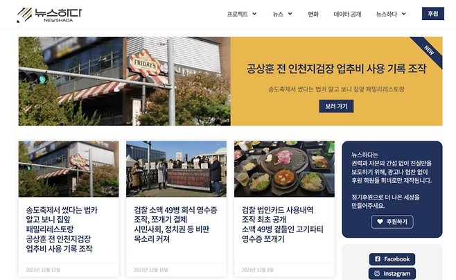출범한 독립언론들의 활동은 벌써 활발하다. 뉴스하다는 인천지방검찰청의 법인카드 사용내역을 분석해 부천지청이 국정감사 특수활동비를 국정감사 격려금으로 사용한 사실을 밝혀냈다. 뉴스타파를 비롯한 6개 언론사와 3개 시민단체가 꾸린 검찰 예산검증 공동취재단 활동의 일환이었다. 덕분에 지난달 전국언론노동조합 민주언론상 보도부문 특별상을 받기도 했다.