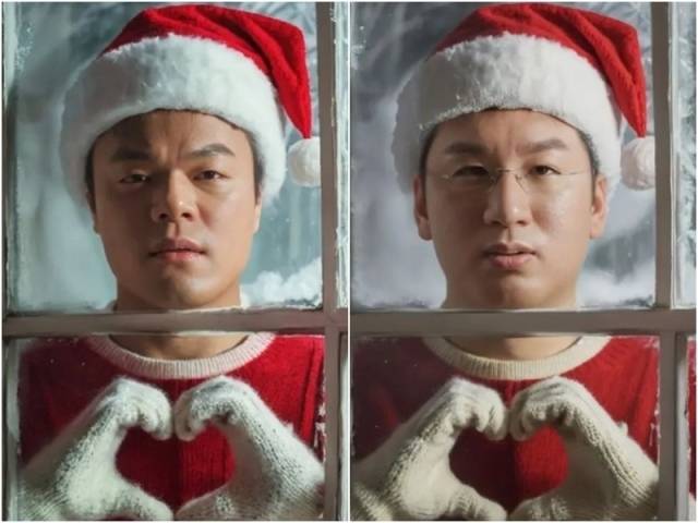 [마이데일리 = 박윤진 기자] 가수 박진영과 하이브 의장 방시혁의 일명 '남친짤'이 온라인에서 화제다. 산타모자를 쓰고 손하트를 날리는 모습이 자연스럽다. 이는 실제 사진이 아닌 AI가 생성한 이미지다.