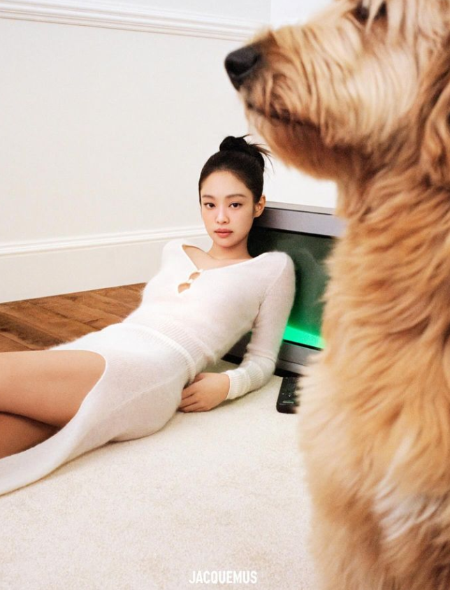 블랙핑크 제니가 사랑스런 강아지들과 특별한 연말 화보를 촬영했다.