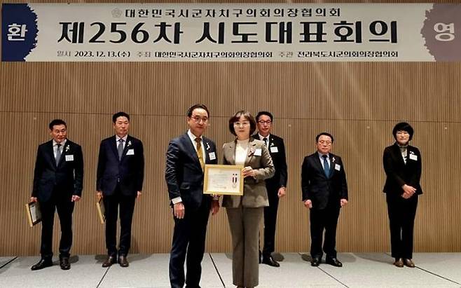 전북 김제시의회 김영자 의장이 13일 제256차 시·도 대표회의에서 ‘의정봉사상’을 수상했다.