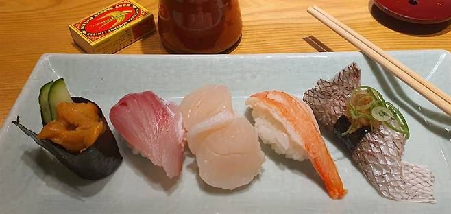 | ▲ 오사카 통천각 인근엔 이른바 ‘맛집’이 흔하다. 그곳 식당에서 맛본 초밥. |