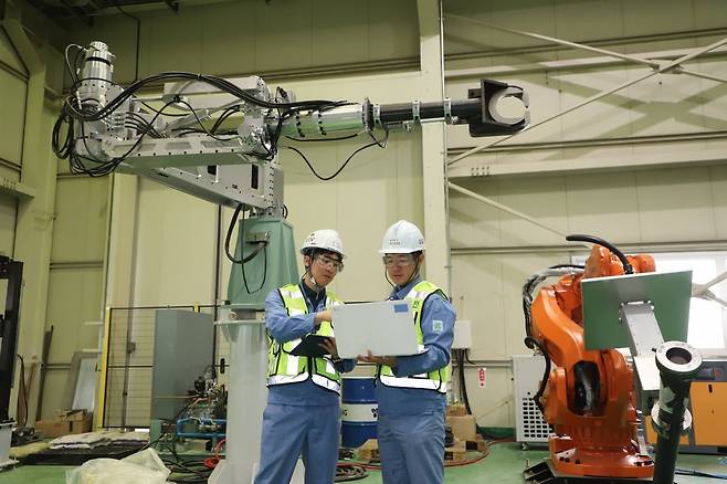 | 포스코DX의 산업용 로봇 포스코DX는 13일 제철소 등 산업 현장에 로봇을 적용하기 위해 조선내화와 업무협약을 체결했다. 포스코DX는 경북 포항시 로봇시험센터에서 제철소 현장에 투입할 로봇의 사전 검증 작업을 진행하고 있다. 포스코DX 제공 |
