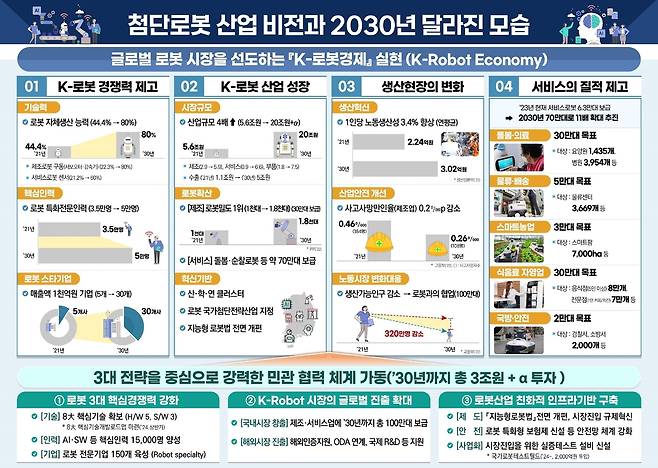 3대 전략은 2030년까지 국내 로봇산업의 규모를 20조원 이상으로 확대하는 것이 목표다.