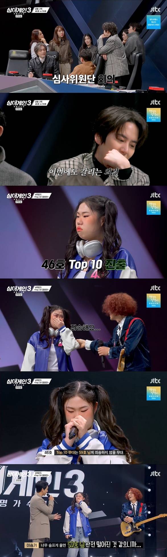 이에 이승기는 "아쉽게도 우리 59호 가수님께서는 탈락 후보가 되셨다"고 설명, 46호 가수는 "죄송해요"라며 59호 가수에 대한 미안함에 눈물을 보였다.
