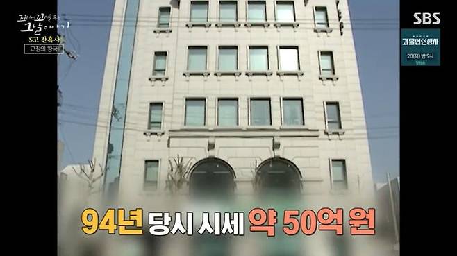 교장의 부동산은 이게 다 가 아니었어. 빌딩도 하나 갖고 있었어. 학교 건너편에 14억원을 들여 건물을 지었어. 94년 당시 시세가, 50억 정도야.