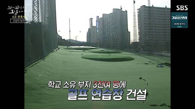 그리고 학교 소유부지 3천여 평에, 골프 연습장을 지었어. "학교 강당도 짓고 해야 하는데 돈이 부족해서, 사설 골프연습장을 지어서 수익사업을 좀 하겠다"는 게 골프연습장을 만든 이유였어.