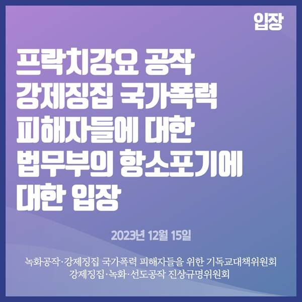 법무부는 "피해 회복을 돕기 위해 항소 포기 결정을 하게 되었고, 대한민국을 대표하여 피해자분들께 사과와 위로의 말을 드린다"라는 한동훈 장관의 말도 전달했다.