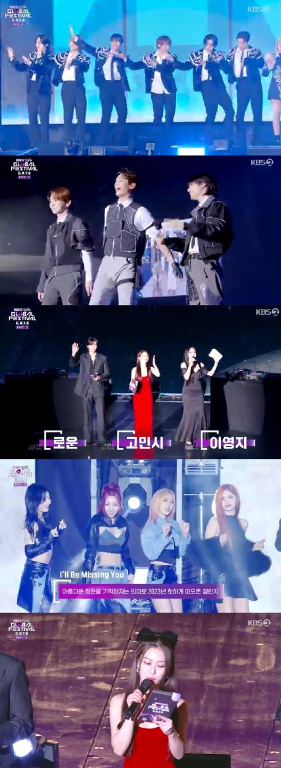 15일 오후 서울 영등포구 KBS홀에서 '2023 뮤직뱅크 글로벌 페스티벌'의 1부가 생방송으로, 지난 9일 일본 베루나돔에서 개최된 2부는 녹화 방송으로 편성됐다. 1부 MC로 로운과 장원영, 2부 MC로 로운과 고민시, 이영지가 활약했다.