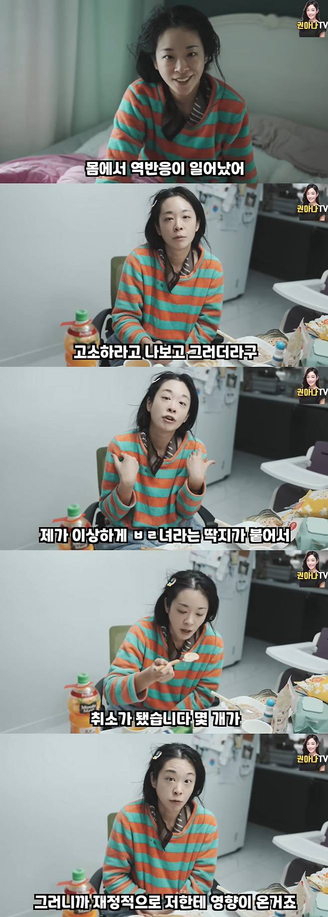 권주현 아나운서는 "연말이니 보자 해서 변호사 형님을 만났다. 그 분이 자꾸 루머 퍼뜨리고 이상한 소리한 사람 고소하라더라. 그렇게 해야지만 진정한 명예를 회복할 수 있다더라"라며 "솔직히 가족친화적인 광고가 예정되어있었는데 그 사건 때문에 이미지가 안 좋아져서 몇 개가 취소됐다. 재정적으로 영향이 온 것"이라고 금전적 피해까지 입었음을 고백했다.