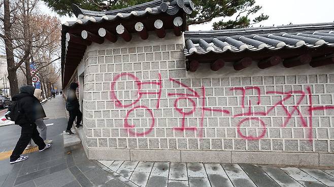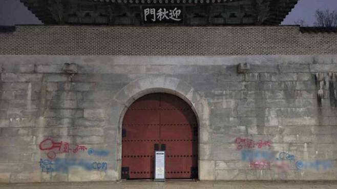 문화재청 "스프레이 낙서로 훼손된 경복궁 담장 신속 복구"