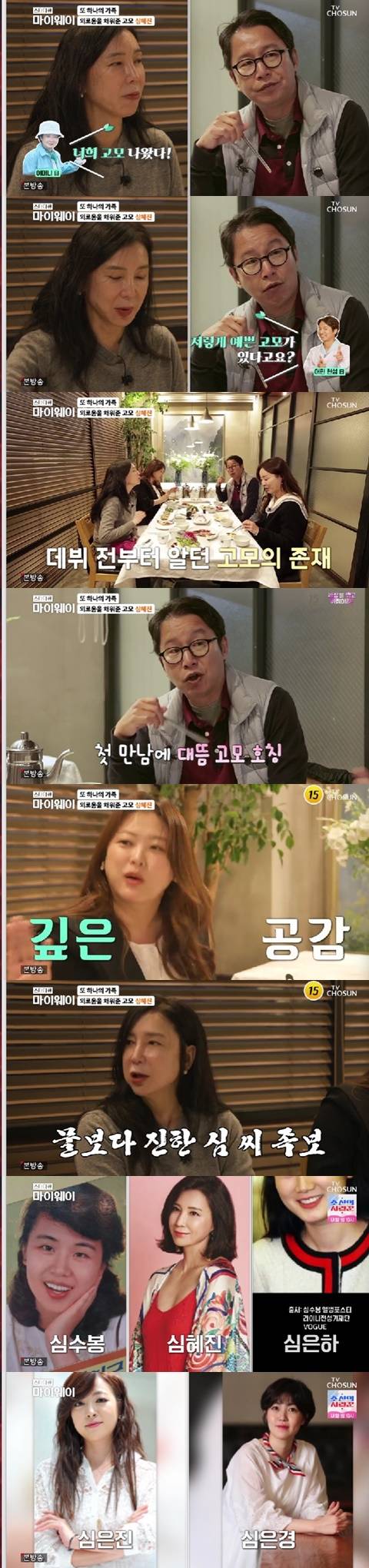 심현섭은 제작진에게 "'안녕 프란체스카' 이미지가 있을 수 있지만 완전 아줌마, 털털한 주부다. 4살 차이밖에 안 나지만 고모라서 엄마처럼 해준다. 엄마가 돌아가시기 전에는 교류가 별로 없다가 엄마가 준 선물인가 했다. 소름끼치도록 잔소리하는 게 비슷하다"라며 웃었다.