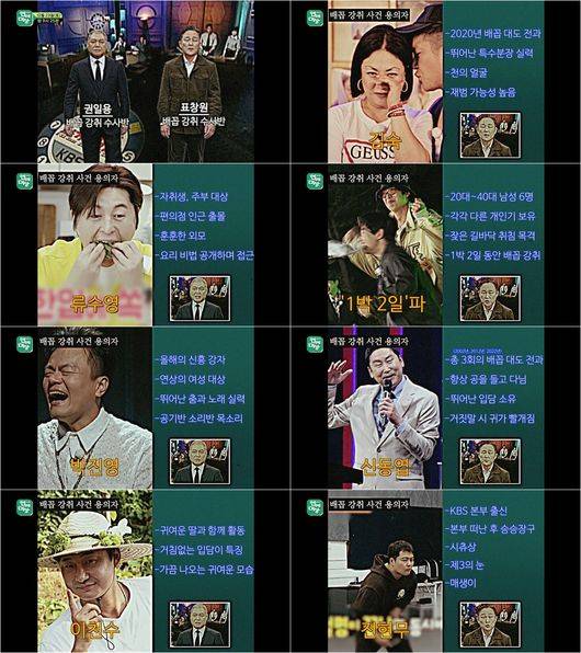 이들이 수배를 내린 첫 번째 후보는 김숙. 표창원은 김숙의 예능 패턴을 분석하며 "각종 분장을 활용해 남녀노소, 시대초월, 국적불문 부캐로 변신해가며 시청자들의 배꼽을 공격하고 있다"라고 주의를 줘 웃음을 자아낸다. '홍김동전', '사장님 귀는 당나귀 귀'를 진행하며 전천후 활약을 펼치고 있는 김숙이 2020년 KBS 연예대상에 이어 여성 최초 대상 2관왕 타이틀을 거머쥘 수 있을지 주목된다.