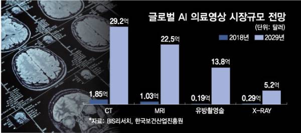 AI를 통한 판독 시간의 획기적 단축은 CT가 의료영상 분야별 시장 규모 전망서 가장 높은 성장성이 예측되는 배경이다. BIS리서치와 한국보건산업진흥원에 따르면 2018년 1억8500만달러(약 2400억원)였던 AI CT 시장 규모는 오는 2029년 29억2000만달러(약 3조8000억원)로 15배가량 성장할 전망이다. 특히 CT로 판독하는 질환 중 폐암은 사망원인 1위 암종으로 조기 검진이 중요한 질환으로 꼽힌다.