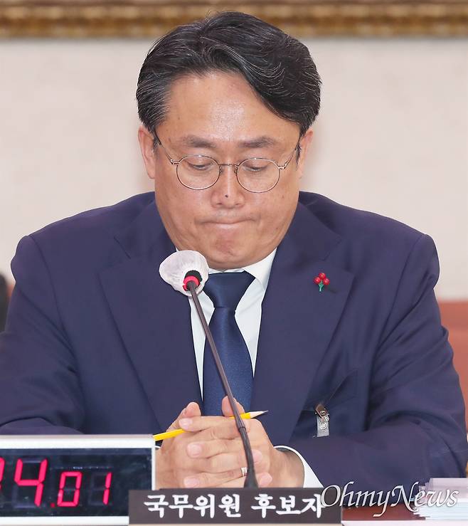 | ▲ 강도형 해양수산부 장관 후보자가 19일 서울 여의도 국회에서 열린 인사청문회에서 강 후보자의 음주운전과 폭력 전과, 아내 위장전입 등 의혹에 대한 의원 질의에 곤혹스런 표정을 짓고 있다. |