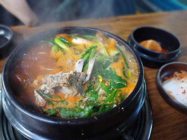 뚝배기 가득 담긴 감자탕, 나도 모르는 사이 등뼈를 들고 있다