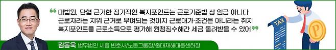 그런데 최근 대전고등법원 2023. 10. 26. 선고 2022누13617 판결은 공공기관이 제기한 근로소득세경정청구 거부처분취소소송에서 복지포인트가 소득세법상 근로소득이 아니라고 판단했다. 복지포인트는 근로를 전제로 밀접하게 관련된 근로조건의 내용을 이루어 지급되는 것이라고 볼 수 없어 근로소득에 해당하지 않는다는 취지다.