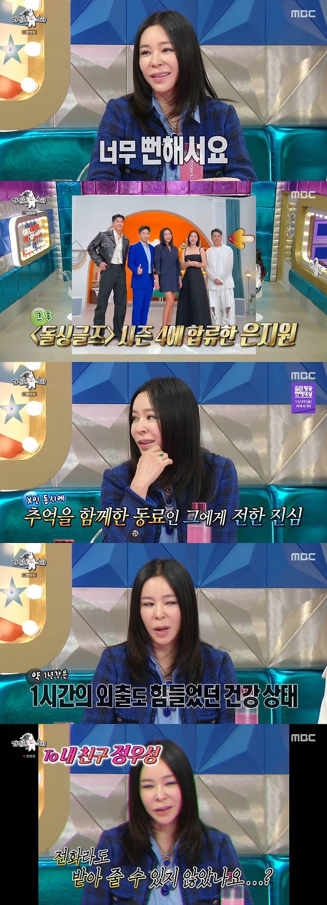 이어 "(이혼 경험이 있는) 은지원이 합류한 후 제 얘기를 할 필요가 없어져서 즐겁게 할 수 있는 프로그램이 됐다"라고 덧붙였다. 강수정은 이혜영에 대해 "가정도 평안하게 해주고 아이도 잘 키운다. 겉으로 봤을 때 생각 없어 보이지만 가득 차 있는 사람이다"라며 울먹이기도 했다.