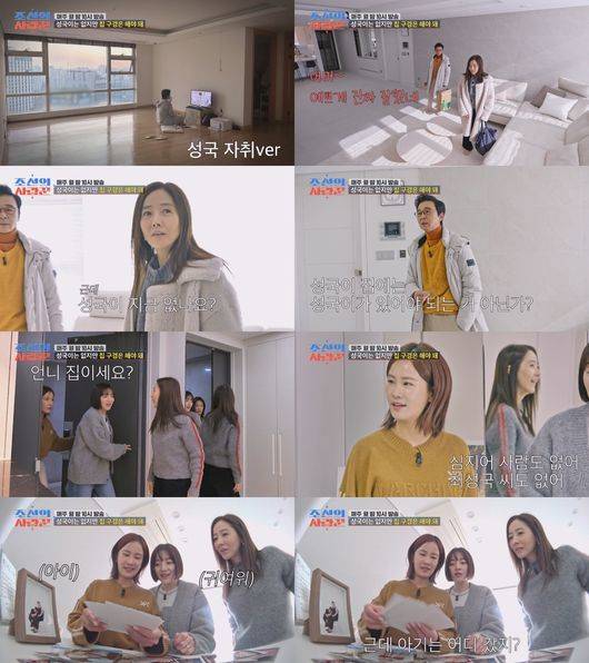 곧 현장에는 ‘열애중 사랑꾼’ 김지민과 ‘예비맘 사랑꾼’ 황보라도 도착했다. 두 사람은 결혼사진을 보고서야 최성국 부부의 집이라는 사실을 알았고, “실제로 사시는 집이에요?”라며 화들짝 놀랐다. ‘올 화이트 인테리어’의 집을 보고 김지민은 “너무 깔끔하고 스튜디오 같아. 심지어 사람도 없네”라며 웃었다.