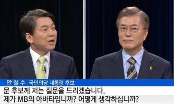 | ▲ “제가 MB의 아바타입니까?” 안철수의 ‘흑역사’로 남은 2017년 제19대 대선 TV토론. 당시 문재인 후보는 다소 황당하다는 표정. |