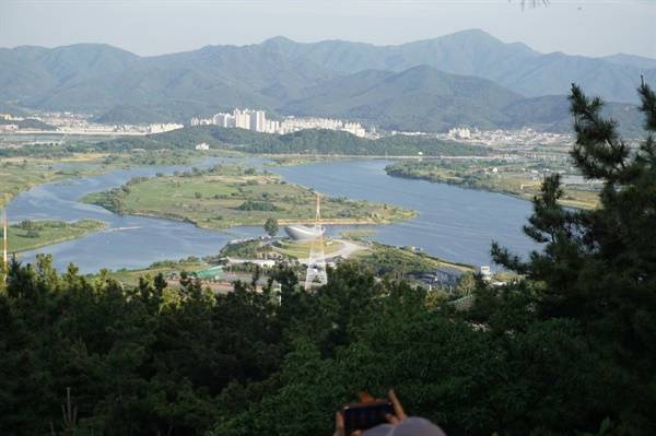 | ▲ 죽곡산 모암봉에서 바라본 낙동강과 금호강 두물머리인 달성습지가 아름답게 조망된다. |