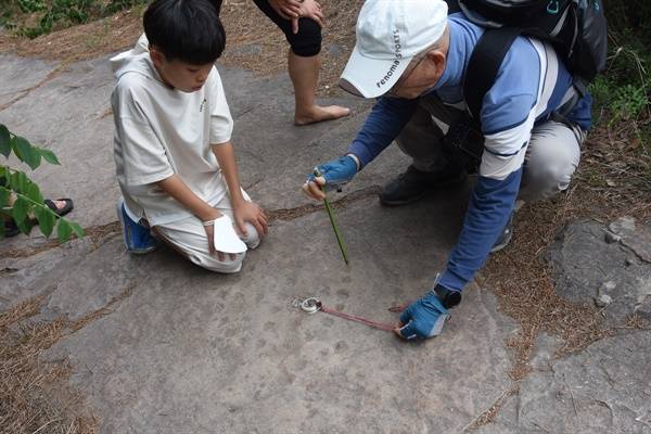 | ▲ 지난 5월 죽곡산 탐방에서 둘러본 '윷판 암각화' |