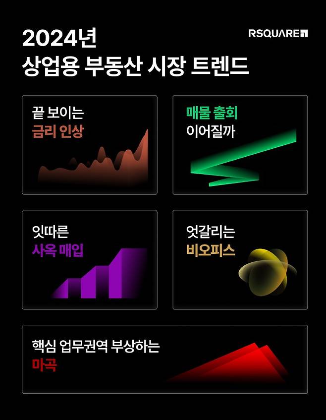상업용 부동산 종합 서비스 기업 알스퀘어는 2024년 상업용 부동산 시장 트렌드를 선정해 21일 발표했다.