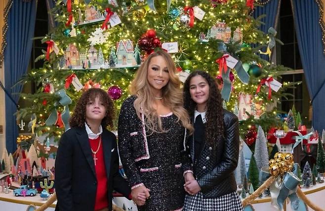 공개된 사진 속 머라이어 캐리는 미국 바이든 대통령과 다정하게 어깨동무를 하며 투샷을 선보였다. 또 쌍둥이 자녀 먼로와 모로칸과 함께 크리스마스 트리 앞에서 환한 미소를 지으며 백악관에서 크리스마스를 만끽했다.