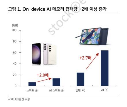김동원 KB증권 연구원은 22일 보고서를 통해 “12월 현재 삼성전자, SK하이닉스는 고객사로부터 D램, 낸드 주문이 대폭 증가하고 있다”며 “이는 PC, 스마트폰 업체들이 내년 1분기부터 AI 기능을 탑재한 온다바이스 AI 스마트폰 및 PC 신제품 출시를 앞두고 메모리 반도체 재고 축적 수요가 급증하고 있기 때문”이라고 밝혔다.