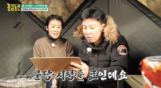지난 21일 방송된 KBS 2TV 예능프로그램 '홍김동전'에서는 동전의 앞면이 나오면 숙마카세와 사우나를 즐길 수 있는 '김숙캠핑'을, 뒷면이 나오는 한 사람은 '머쓱캠핑'을 하는 모습이 그려졌다.