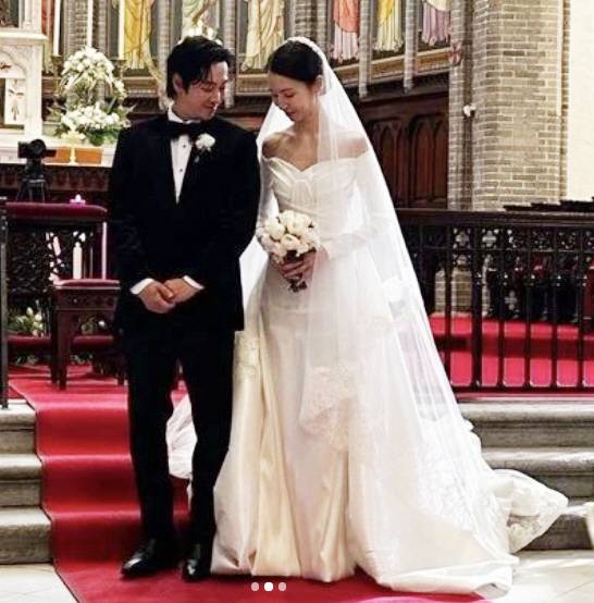 이날 김동욱과 스텔라의 결혼식 사진이 지인들의 SNS을 통해 공개됐다.